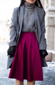 Kombin de gri yerine koyu gri (antrasit) fuşya yerine koyu pembe kullanılabilir. Yine canlı bi görünüm elde edilir bu kombin de. Kış için idealdir.